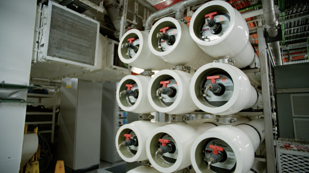 Beyond reducing water use overall, we sustainably source nearly 90% of the freshwater used on board our ships from the sea itself, avoiding over $33 million** annually in costs associated with purchasing fresh water from other sources. Our self-sufficient water production systems — such as advanced desalination systems, including evaporators often powered by heat recovered from our engines, and reverse osmosis equipment — help preserve other freshwater sources for the people and places that depend on them.