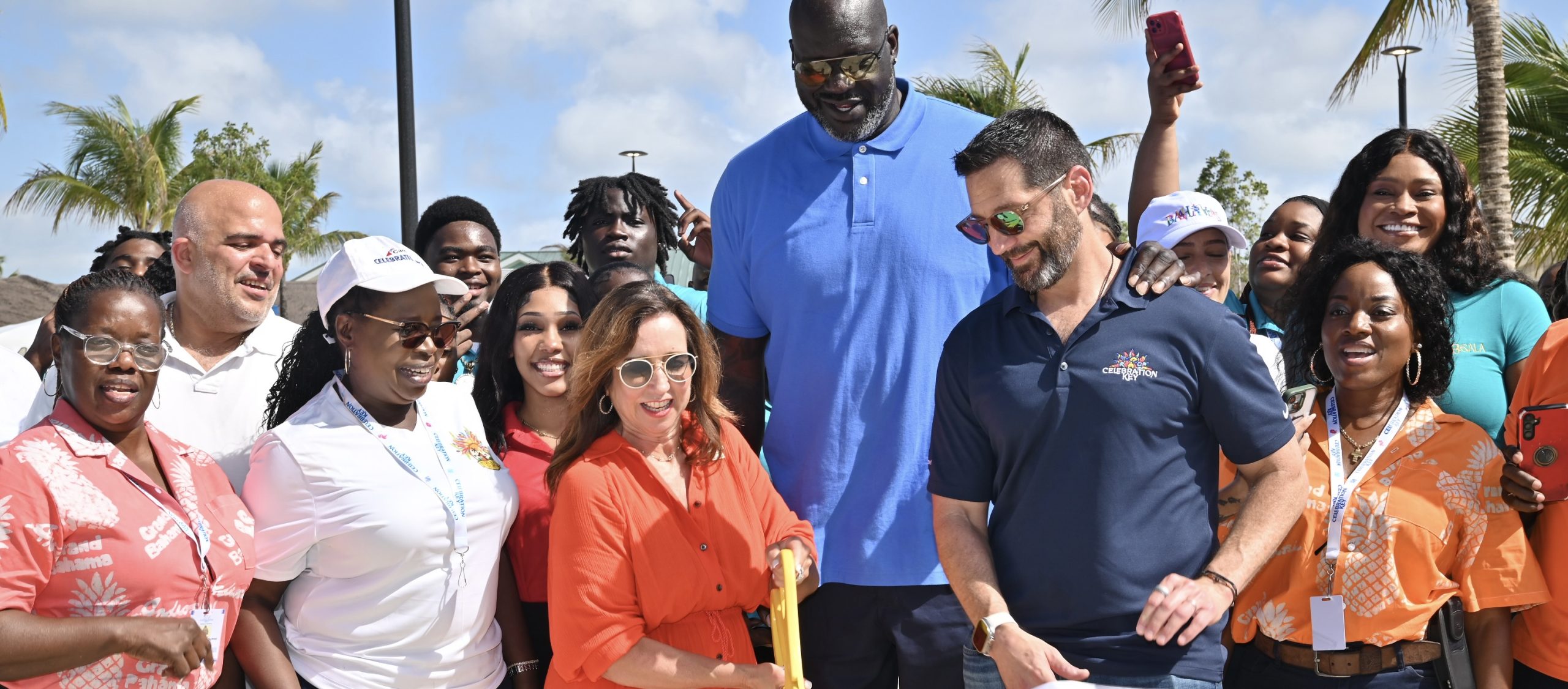 The festivities kicked off with a high-energy guest grand opening celebration, hosted by Carnival Cruise Line President Christine Duffy, with Carnival Corporation CEO Josh Weinstein also in attendance. But the real slam dunk came when Carnival’s Chief Fun Officer, Shaquille O’Neal, stepped onto the scene – posing for photos, signing basketballs for a few lucky fans and officially opening Celebration Key’s brand-new basketball courts.