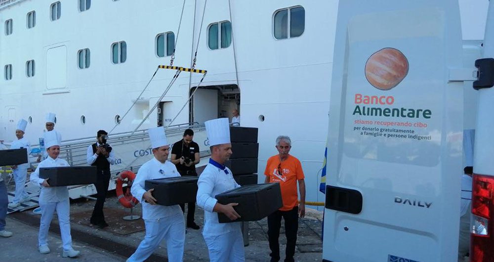 John Portelli, general manager at Roma Cruise Terminal, said, “Twice a week in Civitavecchia, nutritious surplus food and gourmet meals are offloaded from Costa ships and given to the Red Cross, Archdiocese of Civitavecchia and the Rotary Club of Civitavecchia to distribute to about 100 families. That means fewer people going to bed hungry, thanks to Costa Cruises.”